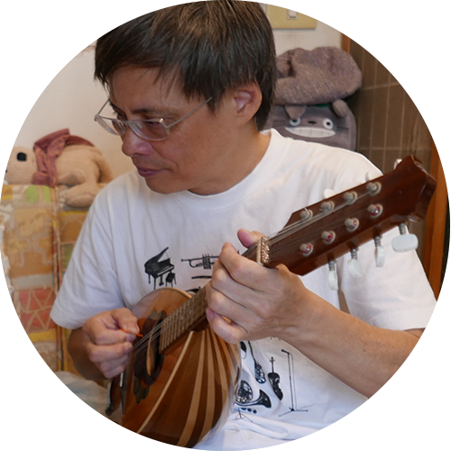 讀文學出身,因為對世界的好奇而踏入博物館工作。6歲起學習古典鋼琴,因參加ACG Music Live 才「開竅」發現編曲合奏的樂趣和成就感。多次擔任 Rubato 音樂會鋼琴伴奏及編曲,曾隨 Rubato 樂團赴日交流演出。2012年與劉晉呈、蕭昀軒、鄭宗寰共同創立 Laboratory of ACG Music(LOAM)樂團,喜歡潛伏後方合奏而非台前獨奏,戲稱自己守備位置應是蹲捕又主導配球的「捕手」。